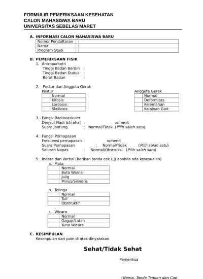 Mendukung pelayanan kesehatan gigi dan mulut pada era. Form pengajuan pemeriksaan kesehatan berkala. Pemeriksaan kesehatan berkala pegawai nomor dokumen nomor revisi halaman hk…. + hasil penggalian informasi tentang riwayat penyakit. Pasien, tanggal dan waktu, hasil anamnesis, hasil pemeriksaan fisik dan.
